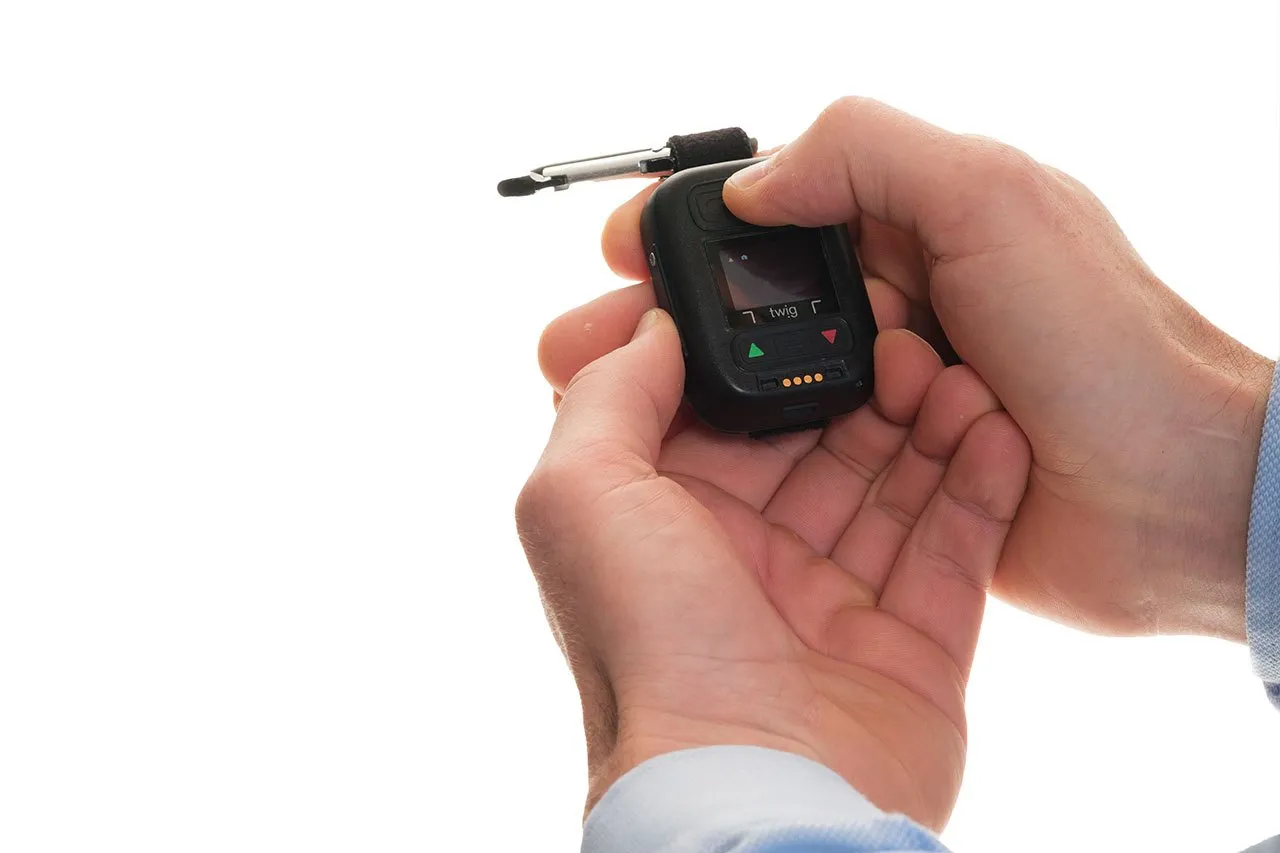 Een compacte alarmknop om snel hulp mee in te roepen.